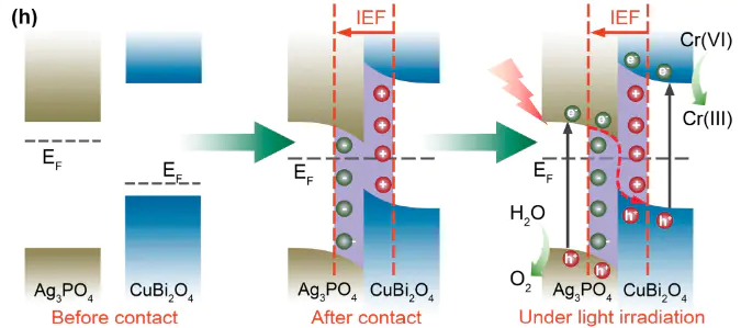 图3:自发电荷转移驱动力与内建电场示意图。DOI:10.3390/nano15201592