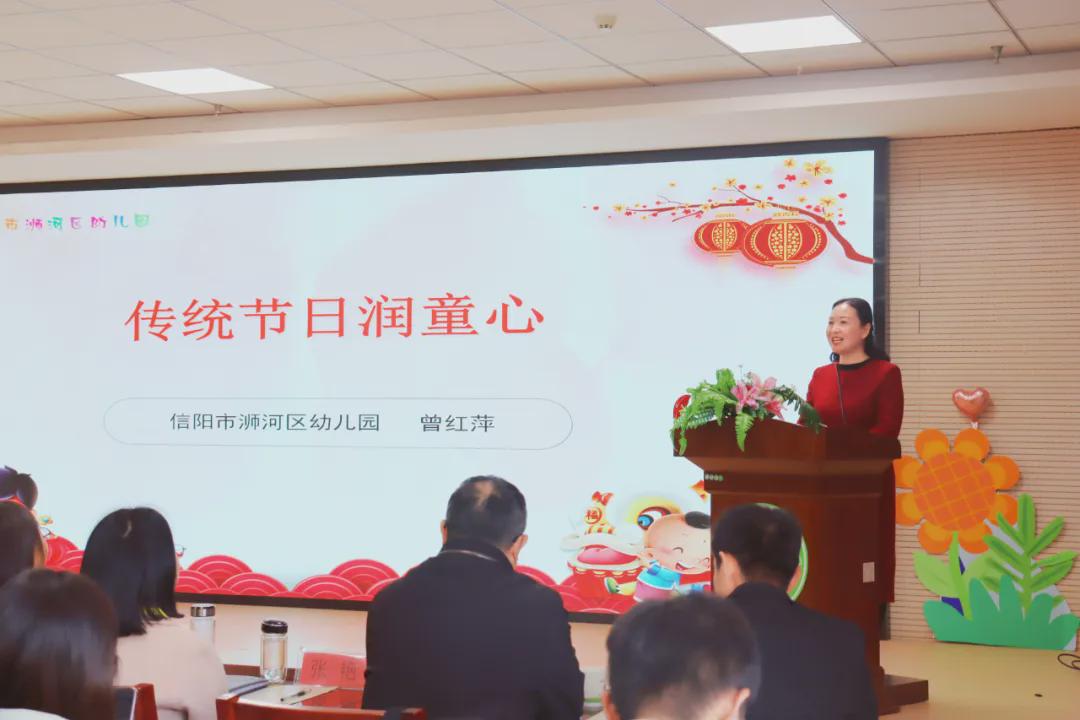 精彩的分享结束后,信阳市教育教学研究室教研员王春勤对此次园本课程观摩活动进行了总结。首先肯定了信阳市浉河区幼儿园传统节日园本课程的实践,既丰富了园本课程内容,又营造了优秀传统文化的课程特色。她指出大家要持续深化园本课程建设内涵,善于梳理课程资源的独特价值,推动高质量的幼儿园课程建设。