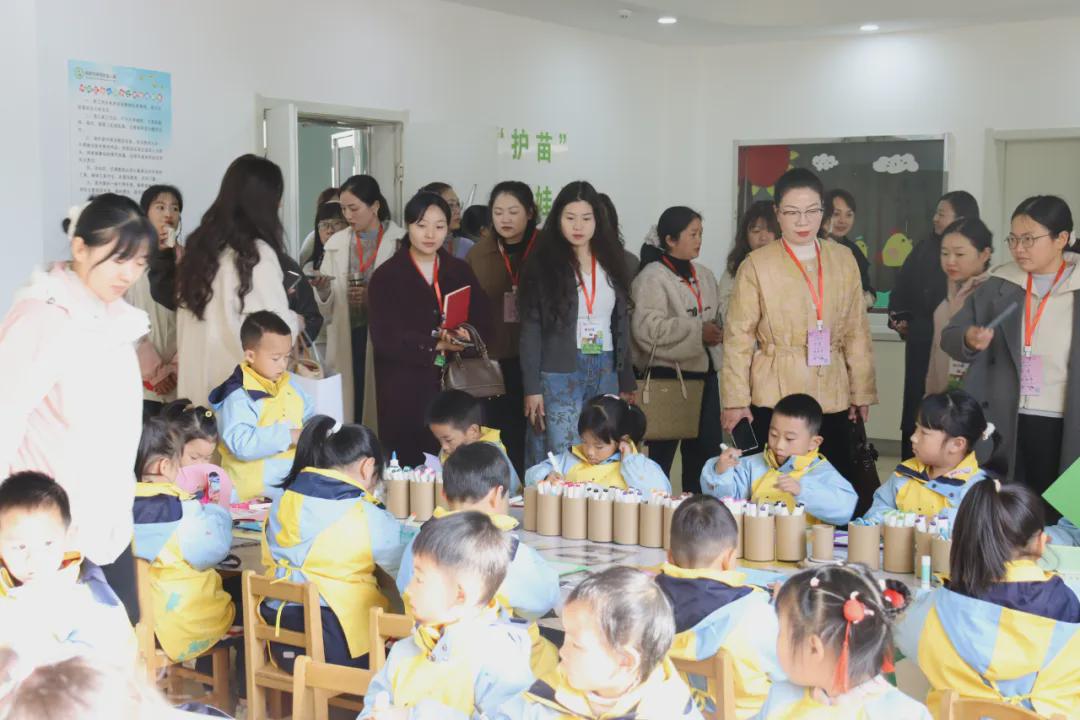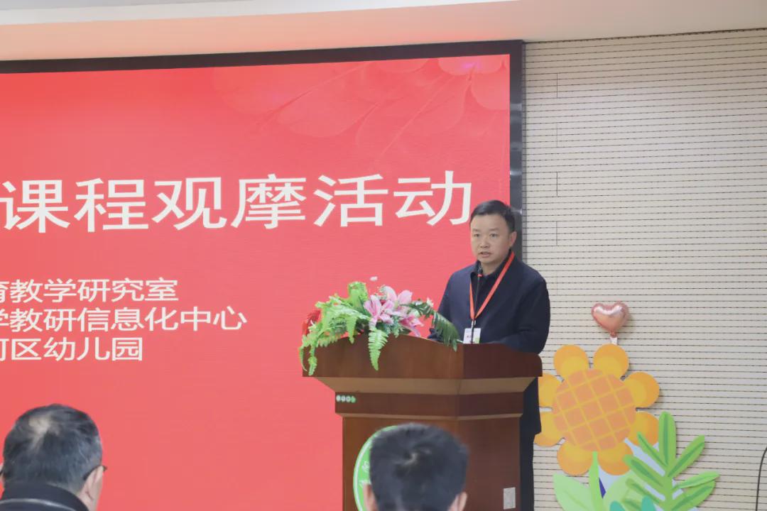 信阳市教育教学研究室党支部书记马维国、信阳市教育教学研究室教研员王春勤、浉河区教体局副局长王成、浉河区教体局专职督学张艳、浉河区教学教研信息化中心主任王晓疆、浉河区教体局校外教育培训监管股负责同志胡丽平、浉河区教学教研信息化中心教研员朱玲玲等参加活动,各县区优秀教研员、资深园长、骨干教师、领航共建园等90余名优秀幼教工作者,深入探讨了高质量幼儿园园本课程,共赴一场美好温馨的观摩活动。