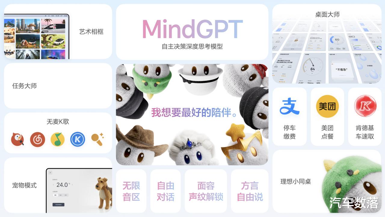 理想同学智能体基于理想自研的MindGPT模型打造,模型思考速度超过行业主流模型2倍,具备超低延迟的理解和推理能力、超长记忆和高表现力的语言生成能力。理想小同桌功能可进行六种方言对话。同时,理想i6首发搭载A2A(智能体到智能体)能力,理想同学智能体联合肯德基小K智能体,实现肯德基餐品点餐服务。