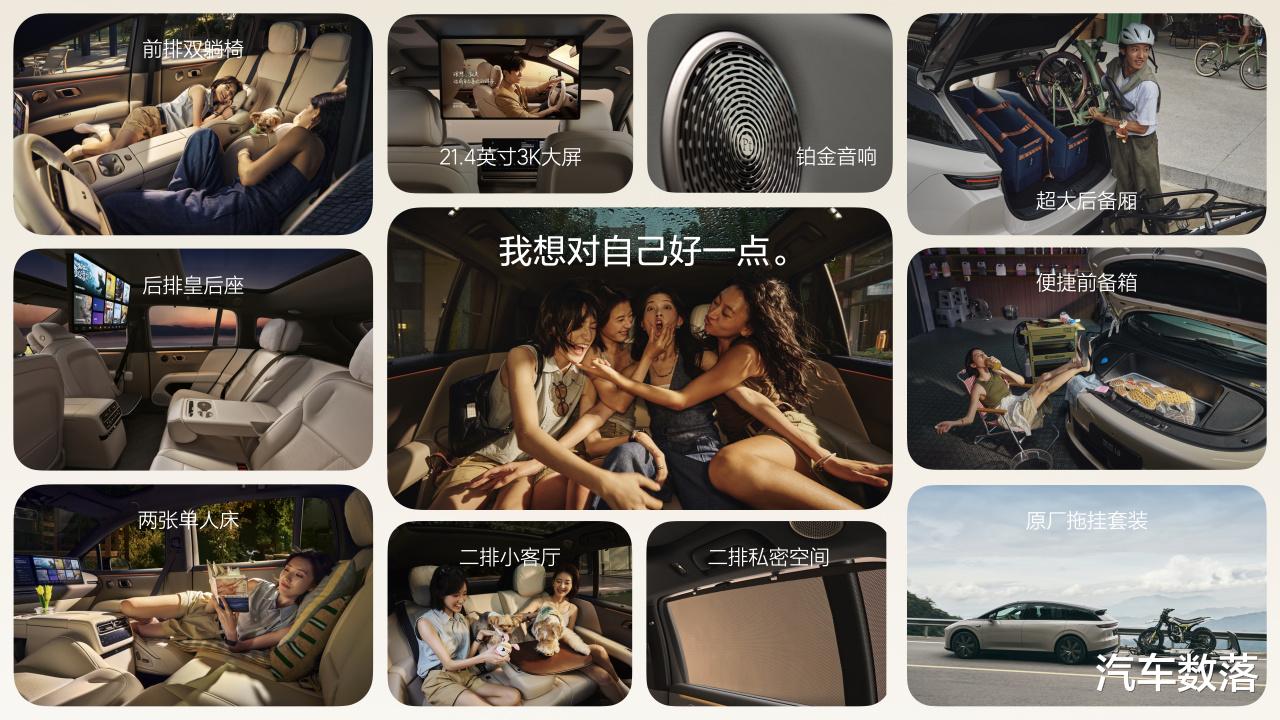 理想i6车内的舒适性有诸多亮点,包括标配Nappa真皮座椅,四座通风、五座加热和前排十点按摩,后排右侧皇后座椅,可设置“单人床”、“i人空间”等模式,拥有8.8升智能冷暖双用冰箱、21.4英寸3K后舱娱乐屏、铂金音响、侧窗隐私帘等豪华配置,实现旗舰级整车静谧性。
