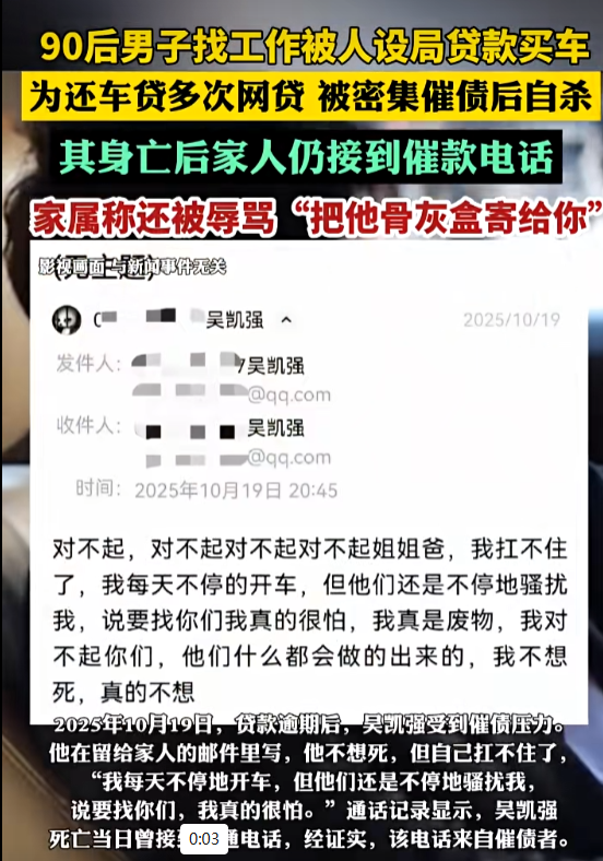 更令人心痛的是,这类骗局还酿成了悲剧。前不久,一名90后网约车司机因为“月薪保底12000元,公司配车” 的广告,被诱导贷款买车,为了还贷款被小额贷缠身,被催收电话接连轰炸之后不堪重负,选择在母亲坟前自杀,让人唏嘘不已。