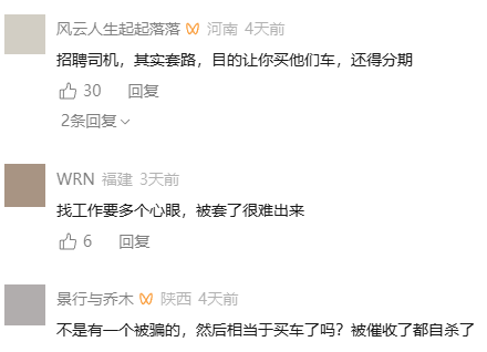 当然,光靠司机自己警惕还不够,我们强烈呼吁监管部门出手管一管。一方面要好好查一查招聘平台,把那些虚假的招聘信息清掉,审核好发布信息的公司资质;另一方面加大对汽车销售行业的排查,严查与诈骗公司勾结的行为,斩断灰色产业链。对那些骗人的公司和个人,更要依法重罚,让他们不敢再坑人,只有这样,才能让普通人找工作时少踩坑,不再被这些 天上掉馅饼”的骗局骗了。