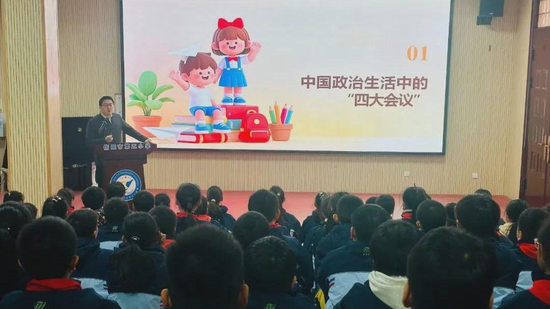 为深化小学思政教育,引导学生了解国家治理体系、厚植家国情怀,近日,信阳市浉河区政协副主席廖玺鹏走进浉河区第五小学,以“同心筑梦新时代 团结奋斗向未来”为主题,为师生讲授了一堂生动鲜活的思政课,校领导、教师及学生代表参与活动。
