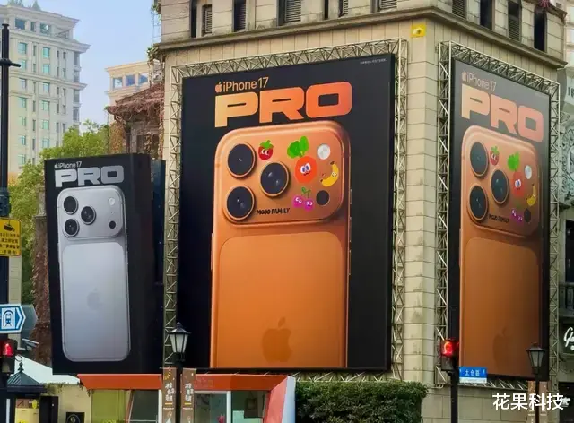 除了官网的 iPhone 17 Pro ,苹果户外广告牌上的 iPhone 17 Pro 也加上了卜卜贴纸。