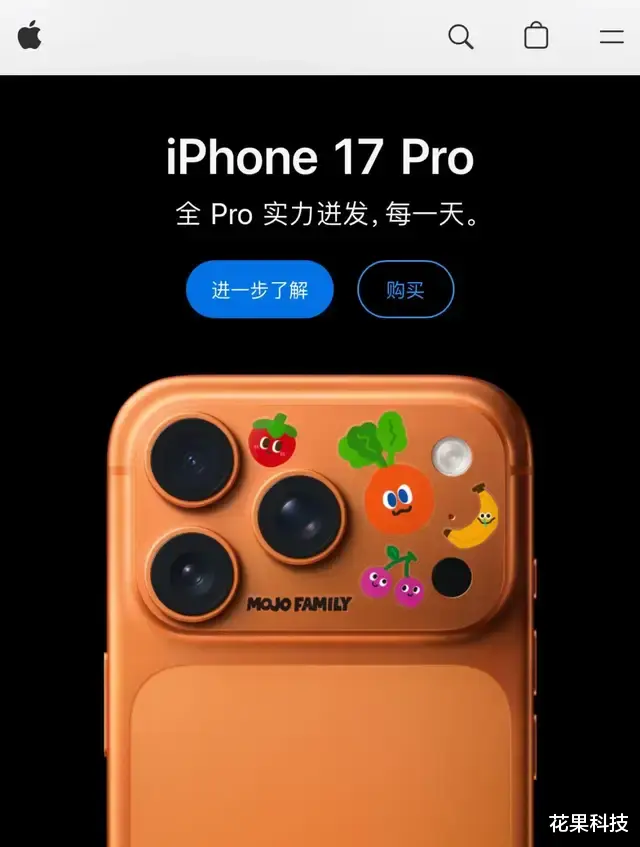 当然需要注意的是,官网上的 iPhone 17 Pro 虽然贴上了贴纸,但并不意味着购买 iPhone 17 Pro 就会赠送贴纸。