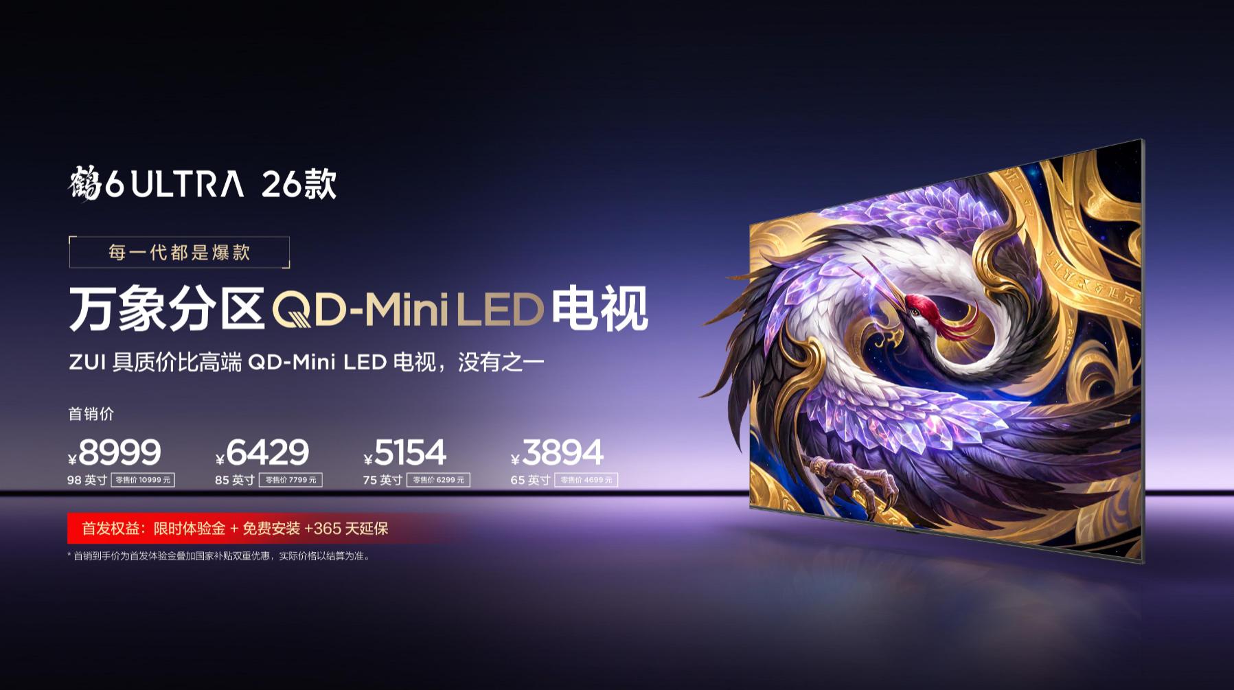 期待4月22日正式开售后,鹤6 Ultra 26款能凭借自身的产品表现,获得更多用户的认可,让更多普通家庭不用花高价,就能享受到旗舰级的QD-Mini LED画质,继续保持鹤系列的良好口碑。