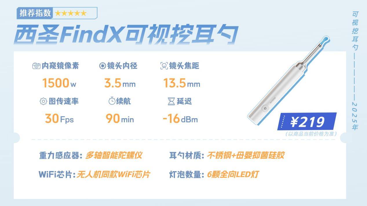 根据本次多款产品的横向对比,西圣FindX在综合表现上优势显著,堪称当前可视挖耳勺领域的标杆产品。无论是成像画质、操作稳定性还是使用舒适度,都明显领先于同类竞品。若您追求精准的耳道清洁与流畅的使用体验,西圣FindX无疑是值得优先考虑的选择。