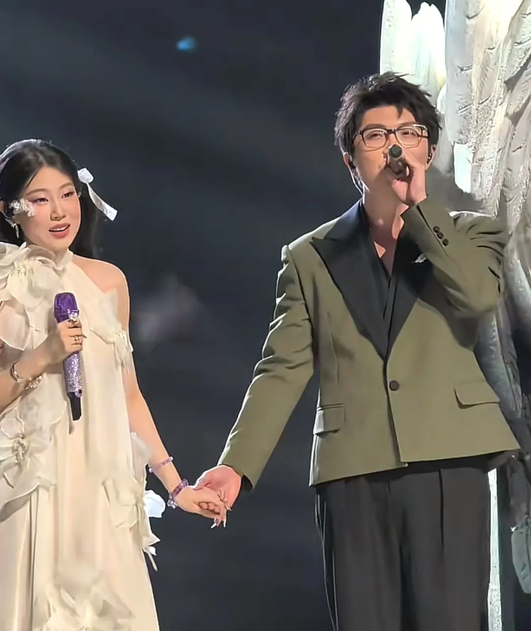 不过她还是努力平复自己紧张的心情,努力地把歌曲唱好,而在她身旁的毛不易也迅速做出反应,主动放慢节奏,压低和声配合,还通过牵手、眼神交流传递鼓励。