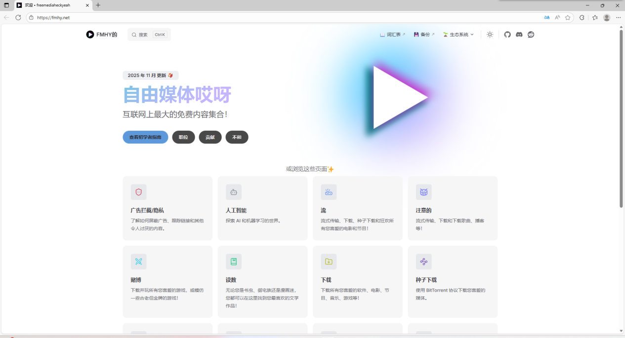 8、FMHY这是一个完全免费的资源聚集地网站。里面涵盖的资源超多,收录了各类实用黑科技软件,如系统优化工具、文件工具、图片处理工具、音频工具、开发者工具等等。