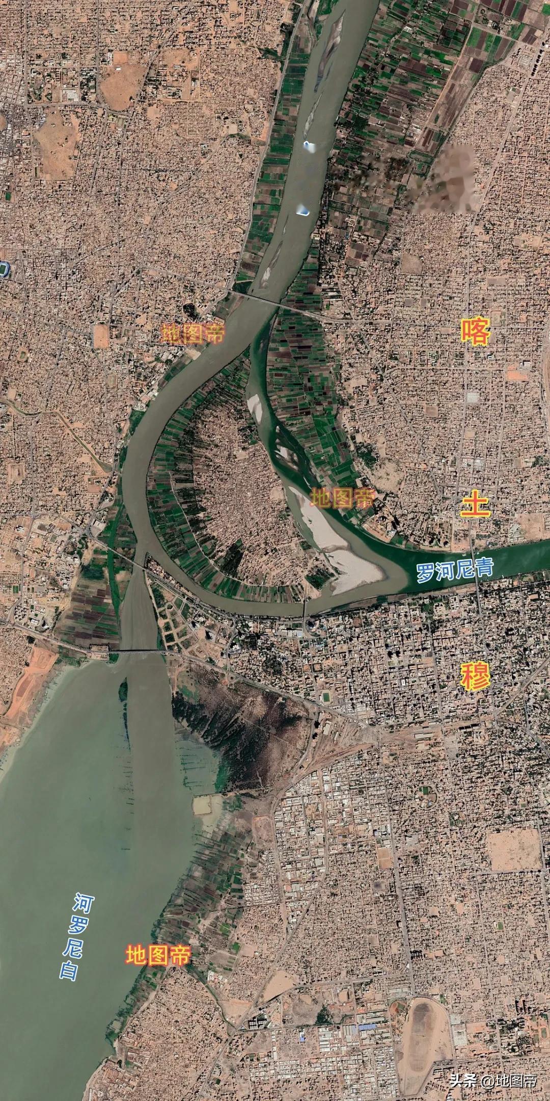 青尼罗河在苏丹的喀什穆与白尼罗河交汇,称为尼罗河。从塔纳湖到两河交汇点,长约1450千米,如果以塔纳湖做源头,尼罗河只有约4000千米长。
