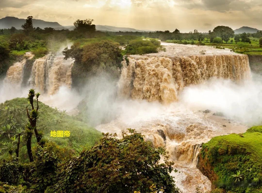 尼罗河流出埃塞俄比亚高原后,称为青尼罗河。雨季时期,青尼罗河带着大量肥沃土壤,从埃塞俄比亚高原呼啸而下,河水因淤泥呈深褐色,所以得名青尼罗河。