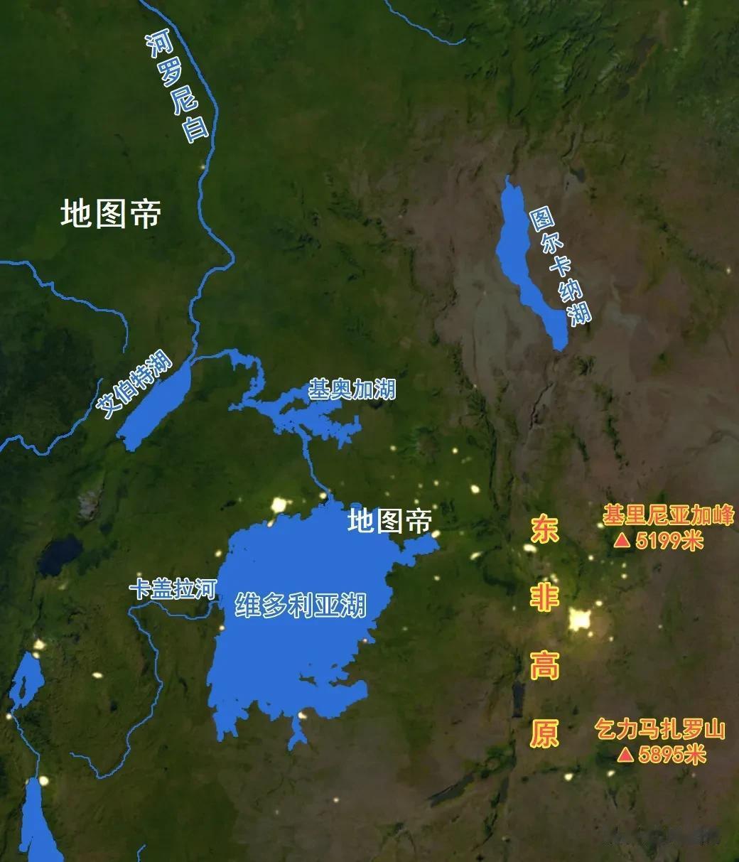 维多利亚湖在赤道上,降水量大,水面海拔1135米,是个高原湖泊,平均水深40米,最大水深80米,蓄水量约2424立方千米。