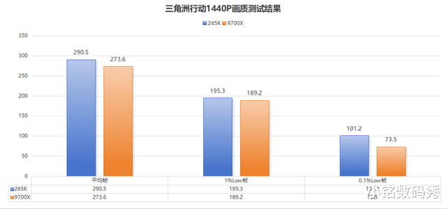 而且从《三角洲行动》1440P画质的实测数据也能看出,265K不仅功耗比9700X更低,温度控制也要优于后者,仅凭双塔散热器就能够压住。