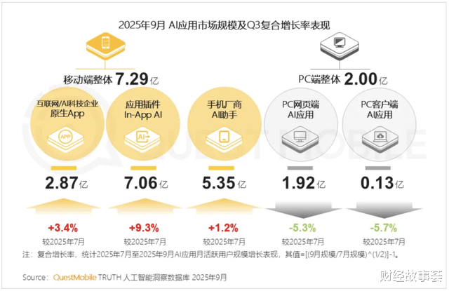 QuestMobile数据显示,2025年9月,AI 原生App、In-App AI及手机厂商AI助手,用户规模分别达2.87亿、7.06亿和5.35亿。其中,月活跃用户规模TOP 50的AI应用中,In-App形态的插件应用占到31个,可谓遥遥领先。