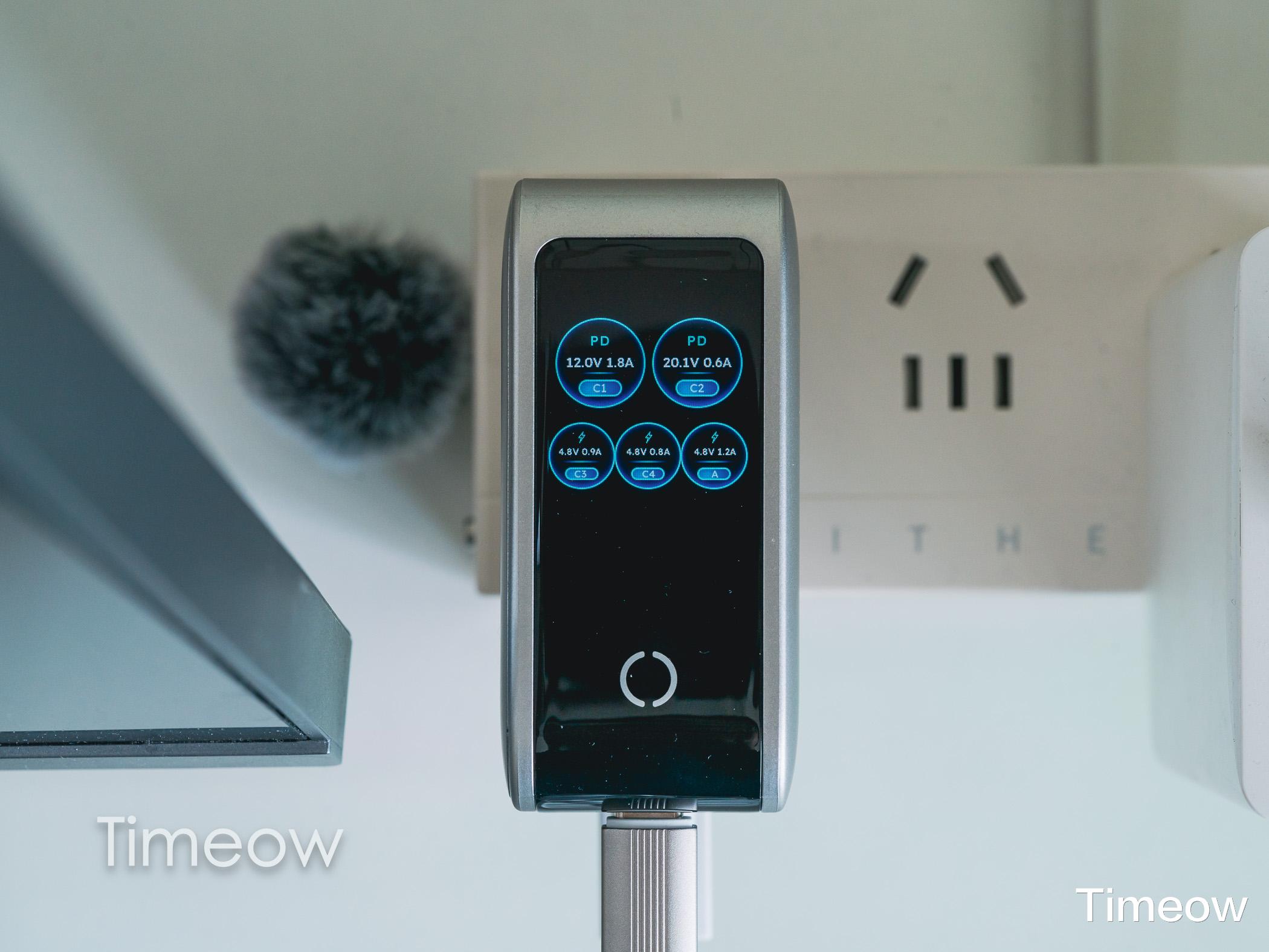 实际使用中,这个屏显的实用性被无限放大:给我的手机和电脑等设备充电时,屏幕清晰显示了每个接口的充电功率,可以判断是否激活了快充,非常好评!