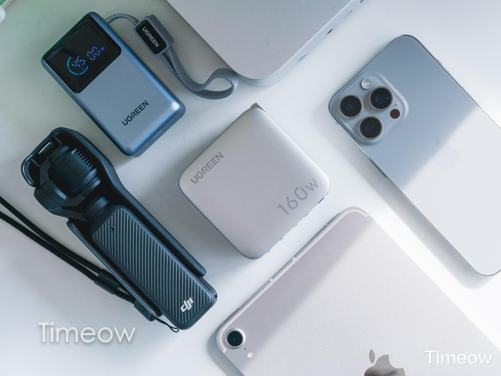 作为同时在用笔记本、平板、手机等多设备社畜,我的桌面长期被各种充电器占领:手机快充头、笔记本充电器堆在一起,插座都很难放得下,所以我早就想换一个多口的大功率充电头了。双十一看到了绿联的160W速显充,价格只要200出头,比苹果的充电器便宜多了,所以速速入手!