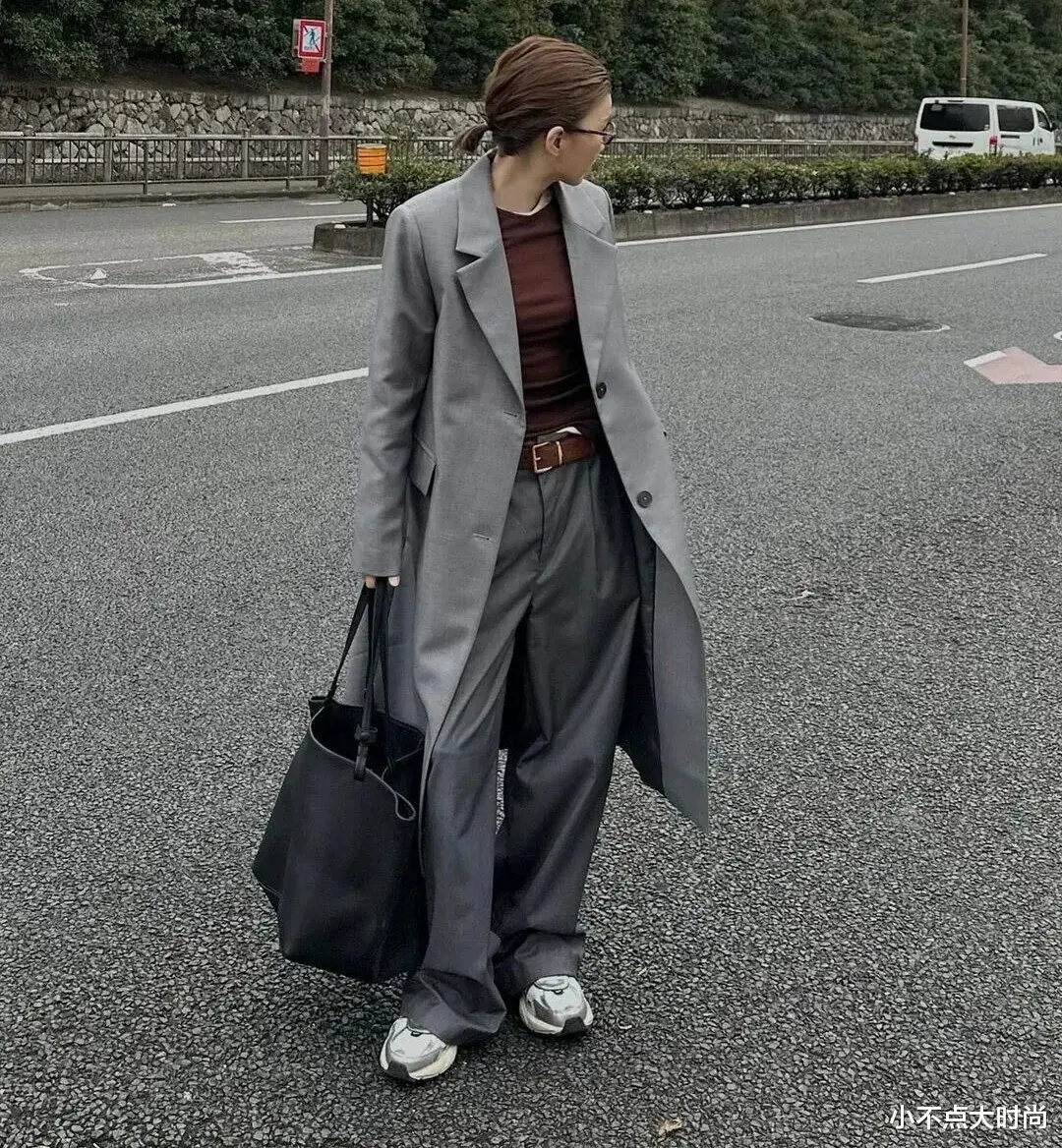 比如H版型的长外套就可以避免拖沓,反而能竖向延长视觉显高。内搭就选择稍宽松的单品,比如高腰阔腿裤,这样一整套搭配有松有紧,既利落又有时尚感,有腔调很高级。▼