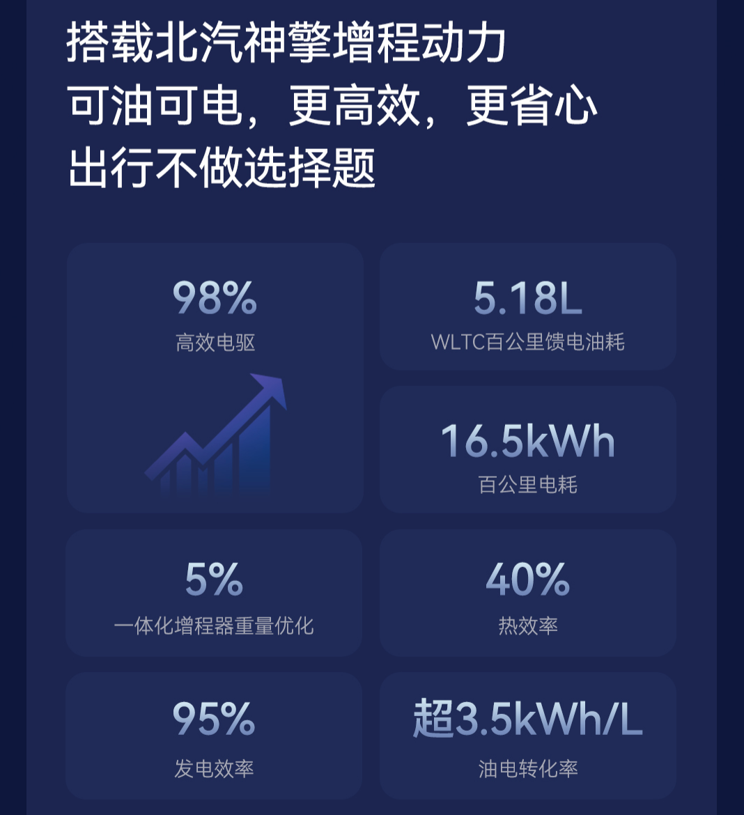 北汽神擎增程系统的通过一体化增程设计实现5%的减重幅度,同时将发电效率提升至95%的技术高位。更值得关注的是,其油电转化效率突破3.5kWh/L的关键指标,这使得WLTC标准下的百公里亏电油耗控制在5.18L的水平,为增程车型的能耗标准树立了新基准。