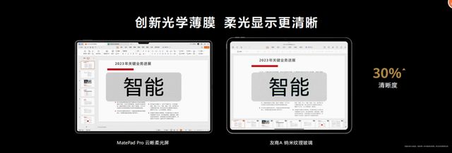 目前不管是办公、娱乐还是学习,都需要长时间地对着电子屏幕,就会对眼睛造成很大的伤害。全新HUAWEI MatePad Pro 13.2 英寸柔光版搭载柔性OLED云晰柔光屏,实现3:2 的屏幕比例、2.8K高分辨率、1000nits的最高亮度、1,000,000:1 的高对比度,在高度还原色彩中带来更震撼的视觉效果。除此之外,柔性OLED云晰柔光屏也能抗眩护眼,减少长时间用眼的不适感。