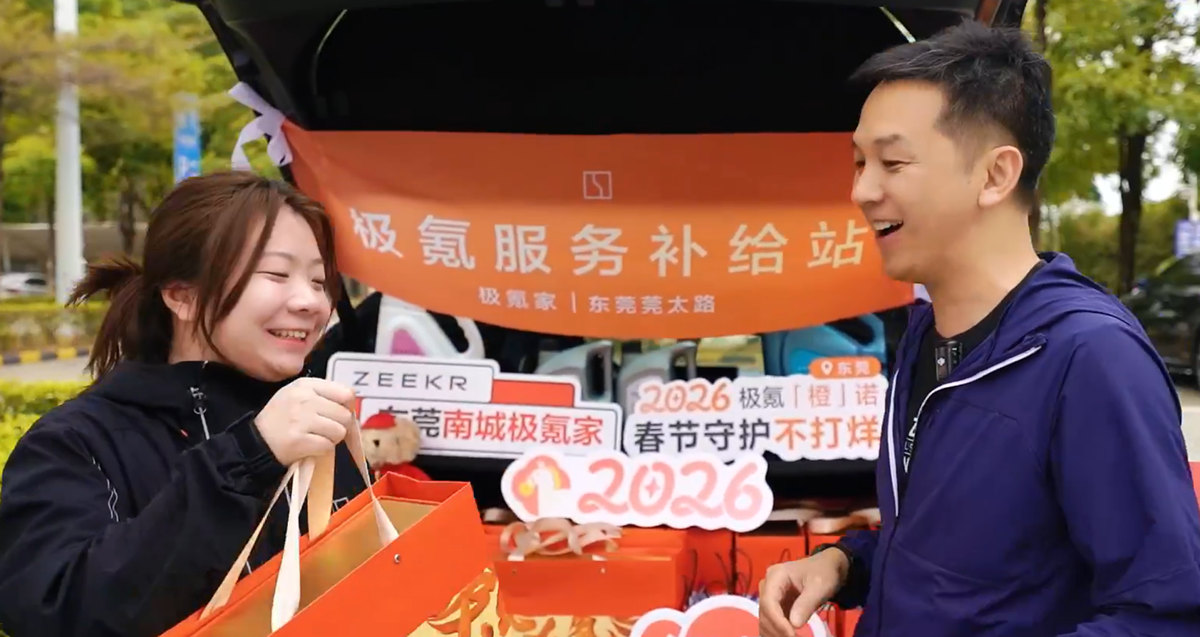 而在南京的高速服务区补给站,极氪还为车主送上定制暖心礼包,让新能源车主在补能的同时,也能感受到浓浓的年味。