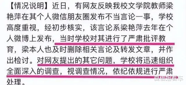 从日本回来之后,还在自己的社交平台发布各种亲日的言论,每天晒的都是日本的漂亮风景和文化风俗等照片。不过为了考虑自己的教师前途,梁艳萍才稍微压抑了自己的行为,低调了许多,想着到了合适的时候再发表。