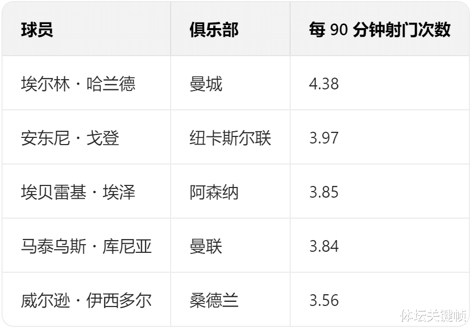 2025/26 赛季每90分钟射门次数最多的球员(至少首发3次)
