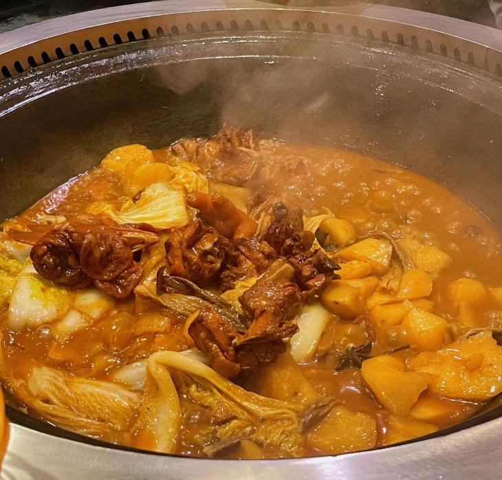 排骨和鸡肉炖得火候太到位了!轻轻一抿就脱骨,却还带着紧实口感不松散。咬下去满口鲜香,幸福感直接爆棚~ 白菜吸足了浓郁汤汁,滋味比肉还绝。