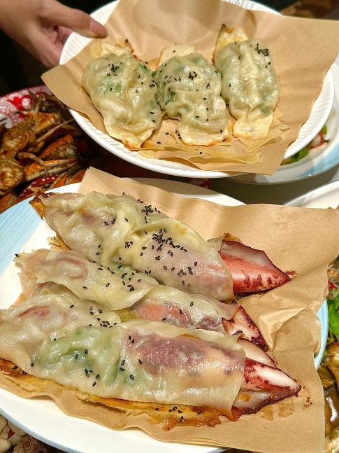 宽婆子的蛏子肉锅贴藏着大海的鲜!煎得焦脆的外皮咬着咔嚓响,内里软嫩多汁,大块蛏子肉鲜甜弹牙,裹着蔬菜的清爽,每一口都超解馋。