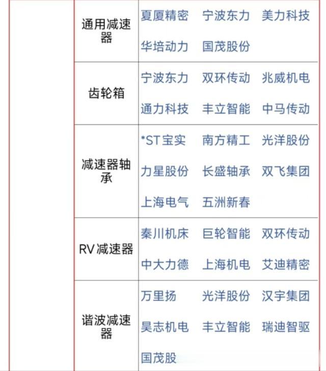 宁波东力、美力科技、夏厦精密、双环传动、通力科技、丰立智能、中马传动、南方精工、襄阳轴承、长盛轴承、巨轮智能、秦川机床、中大力德、汉宇集团、昊志机电。