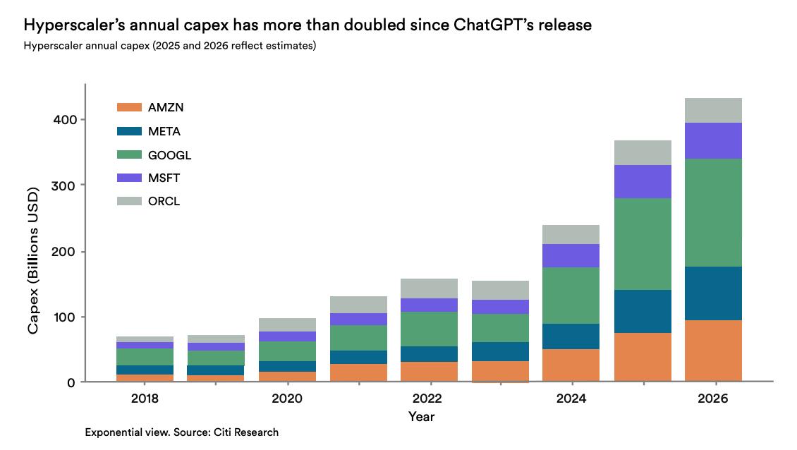 主流云服务商加速资本开支,2025年谷歌年度资本开支超1500亿美元。