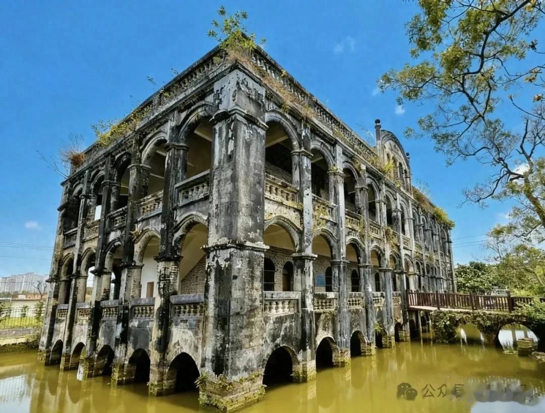 它叫做水楼,位于广西博白县大良村大平坡,是一栋中西合璧的精美洋楼。