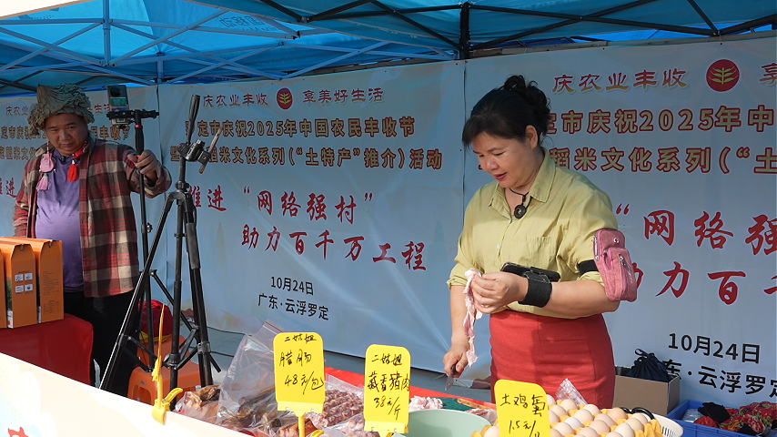网红驿站集市上,罗定“土特产”琳琅满目。网络达人穿梭摊位之间,沉浸式进行线上宣传推广,让网友在云端感受罗定农业的丰收喜悦。