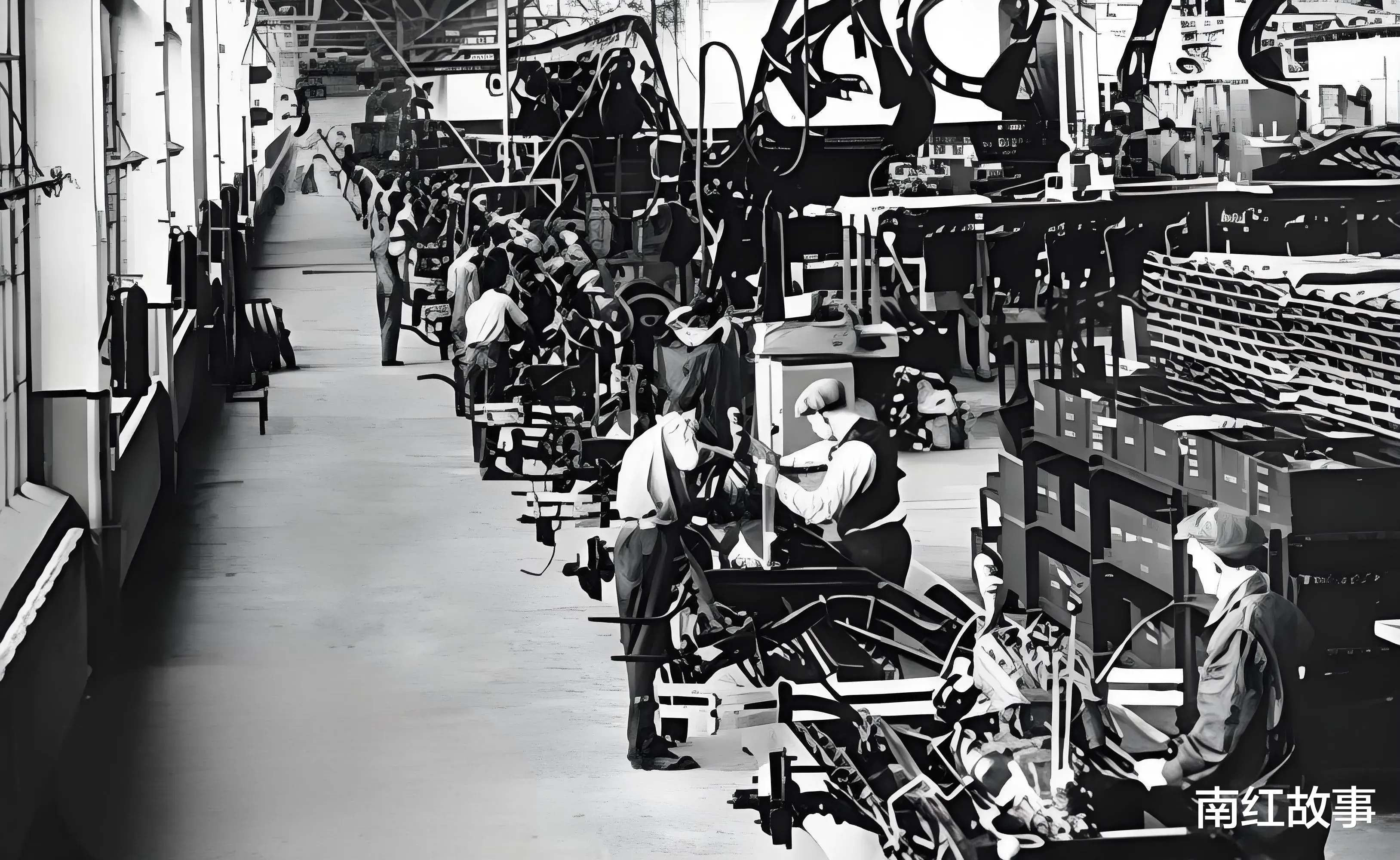 但福特真正是在1913年。当时,福特在高地公园工厂搞出移动装配线,把造车时间从728分钟砍到93分钟。每个工人只重复一个动作,传送带拖着车架子往前挪。产量翻着跟头涨,车价却从850美元跌到260美元——比马车还便宜。