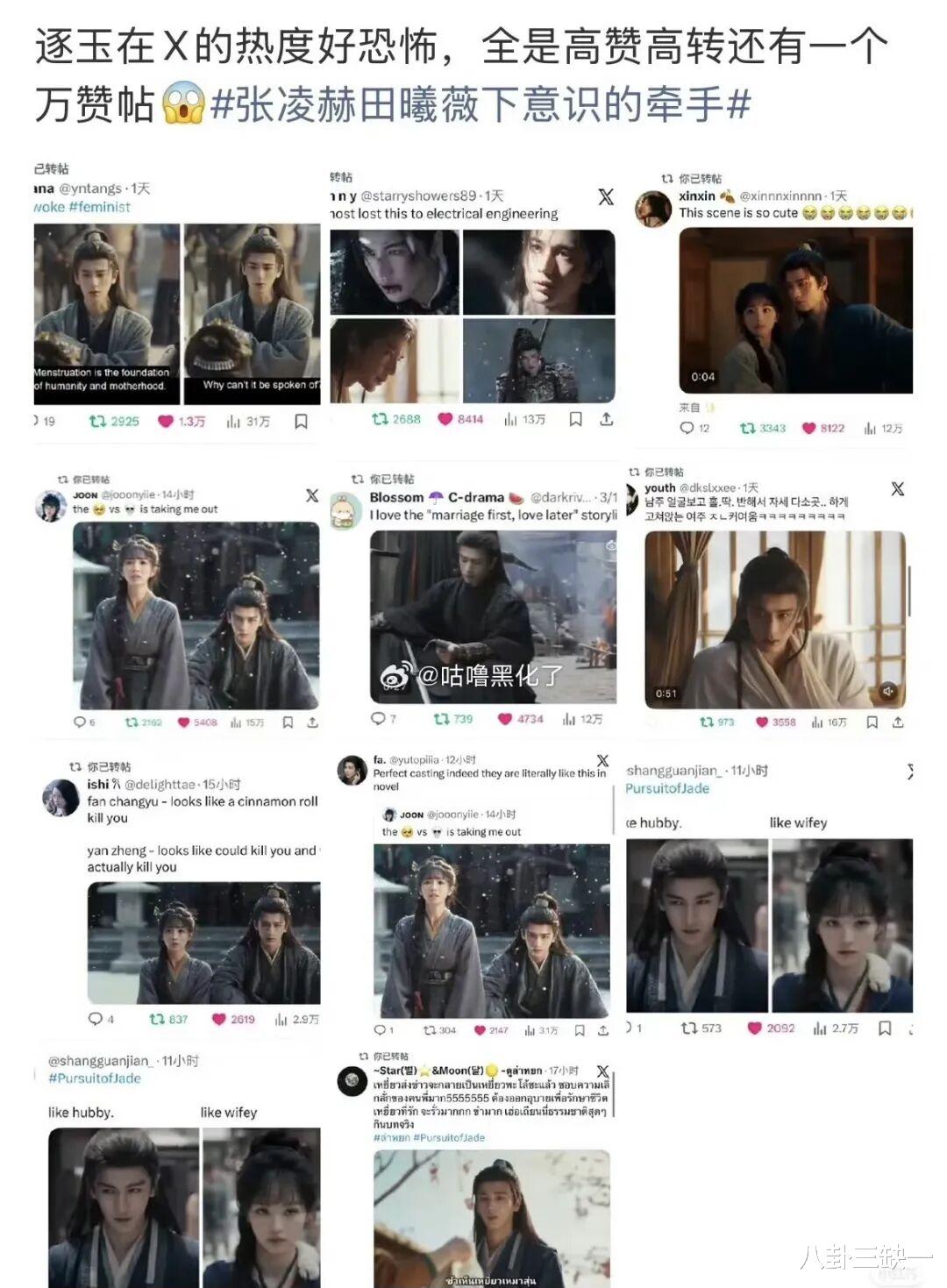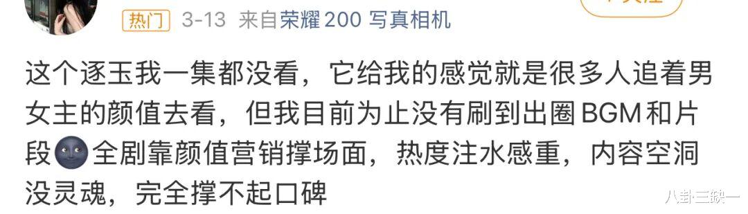 不仅两位主演的讨论度居高不下,配角们也纷纷上桌,吃到了肉,喝上了热乎汤。emmm……南风也没想到,们《逐玉》竟然是这种“先抑后扬、逆风翻盘”的爽文走向。可见“存在感”真的很重要啊,管它是黑是红,有人骂就有人看,有人看就有人真香,真香了就有人安利,安利了就真有人嗑上了。怕的不是被骂,怕的是骂都没人骂,连个水花都溅不起来,那才是真正的完蛋。