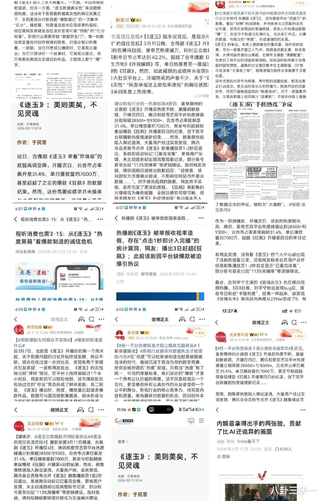 南方日报、北京日报、齐鲁晚报等超10家媒体也陆续下场发声,质疑双平台将《逐玉》打造为“预制爆款”,用资源强推替代内容发酵,破坏行业公平性。