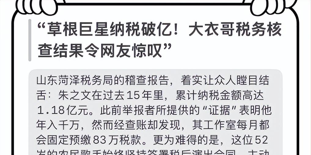结语当税务部门再次为朱之文澄清传闻时,我们或许该跳出"纳税罗生门"的争论框架。这个穿着旧军大衣的山东汉子,早已成为解码当代中国社会的特殊符号——在他身上,投射着大众对阶层流动的渴望,对财富原罪的焦虑,对乡土文化的眷恋,以及对真实性的集体追寻。