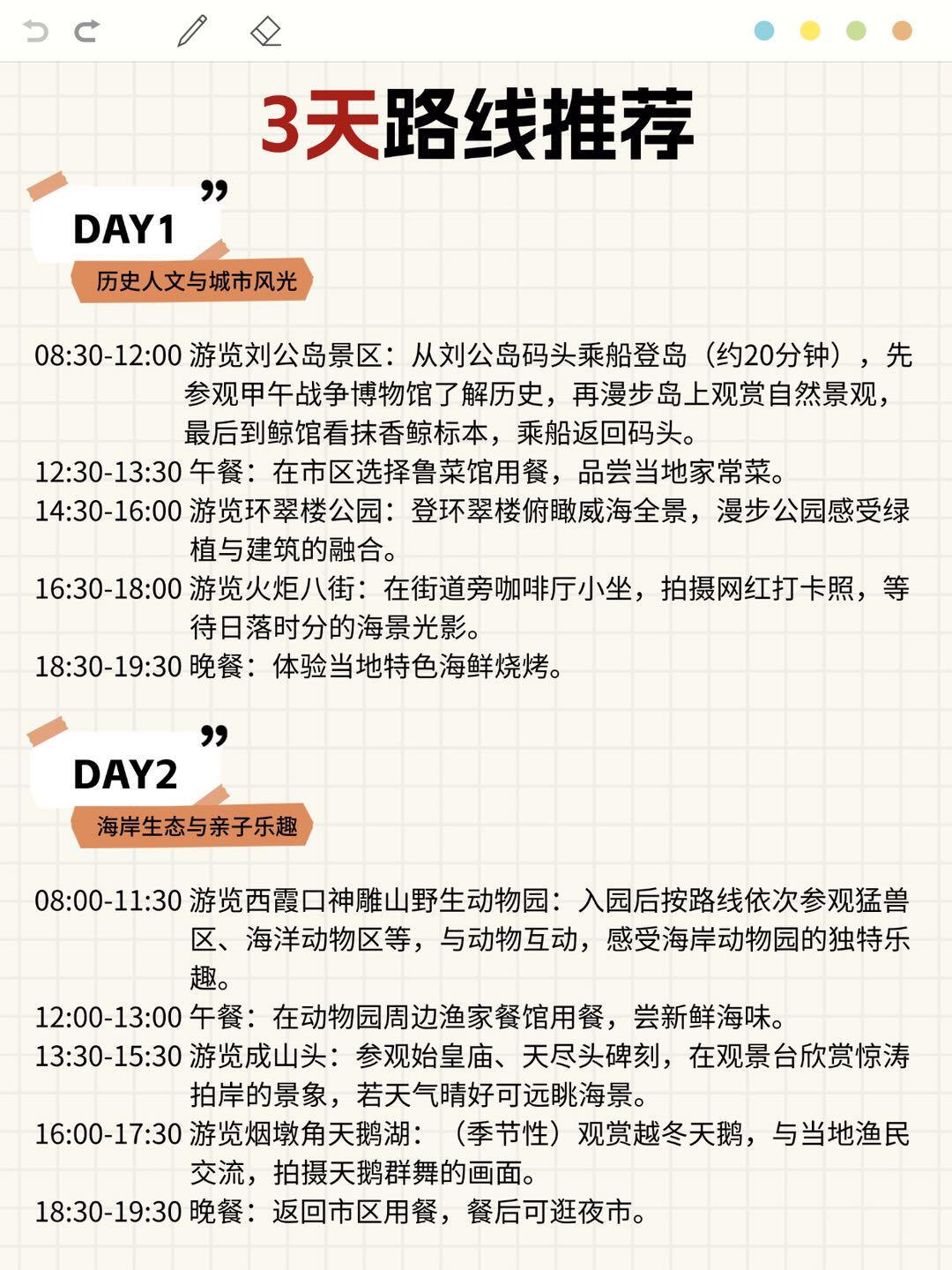 💡Tips:远郊景点建议自驾,刘公岛提前预约!夏季带防晒,冬季看天鹅记得穿厚外套