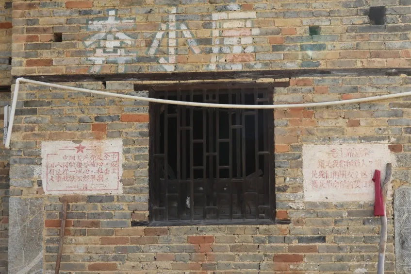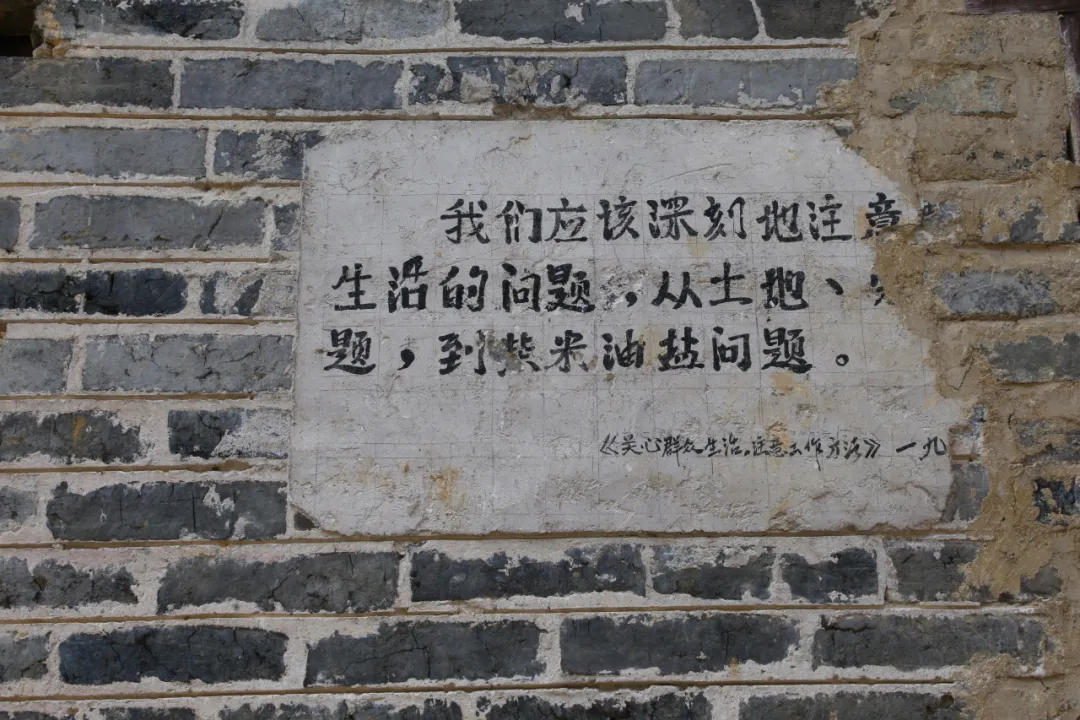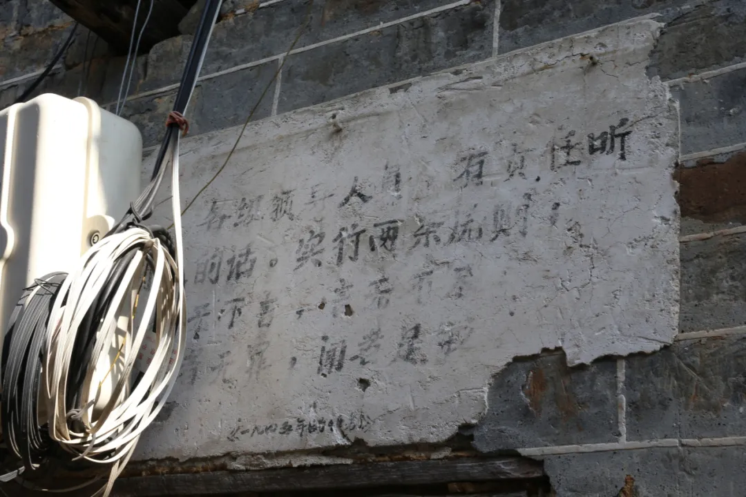 刮了石灰浆的外墙上,还留有一些时代印记,伟人的语录能使人心生敬仰:“我们有批评和自我批评这个马克思列宁主义的武器。我们能够去掉不良作风,保持优良作风。”
