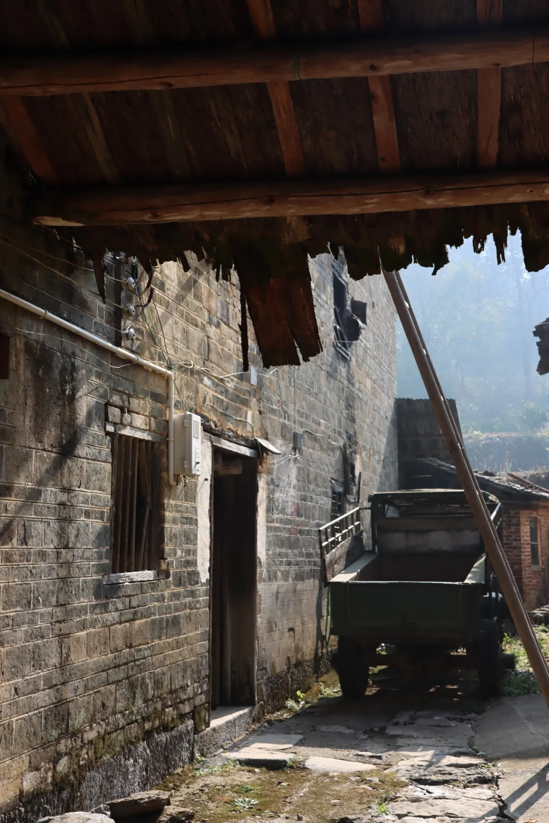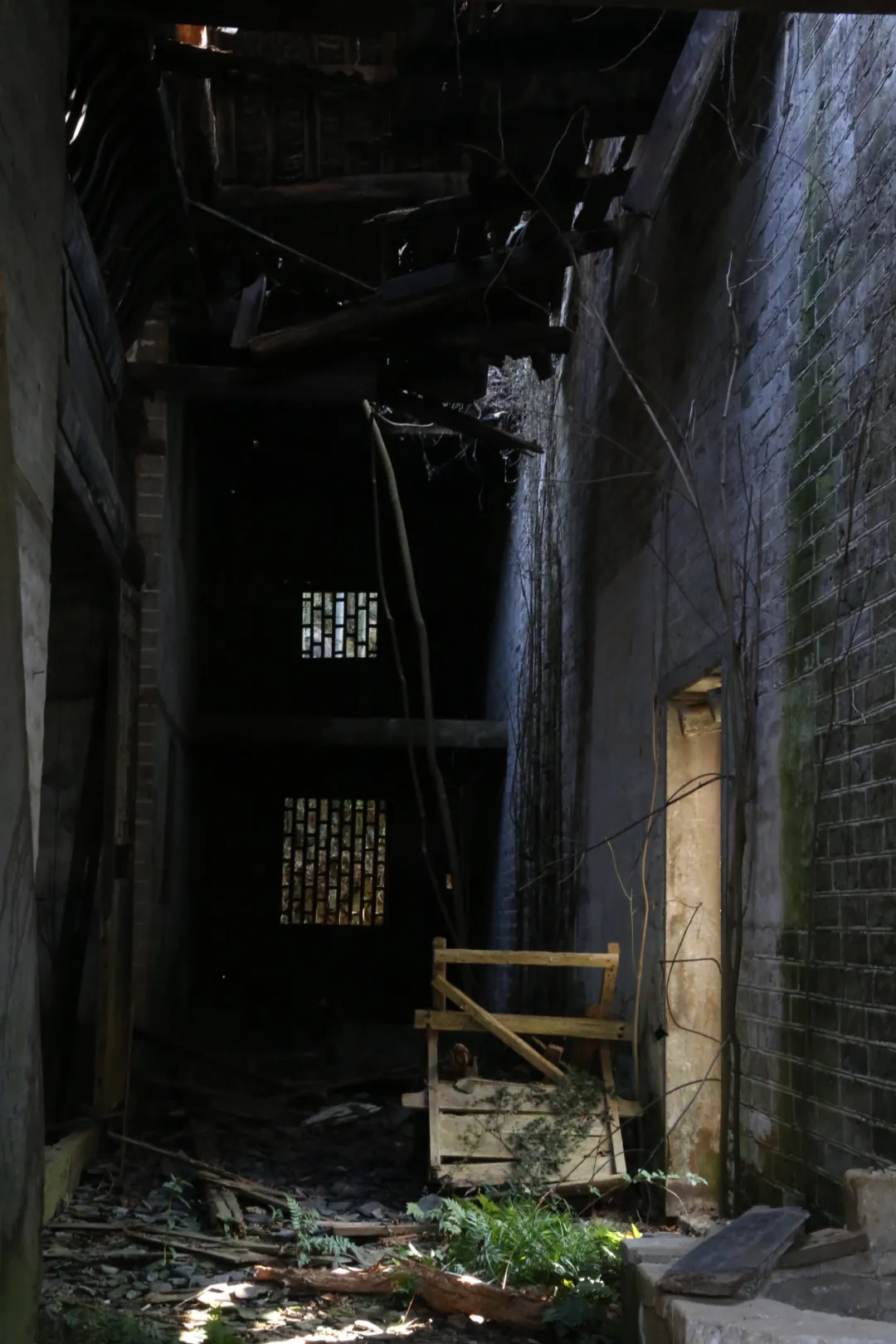 天光透过天井,顺畅地打在长满青苔的石板上。即使是破败的窗棂,其裂口也像祥云一样,仿佛随时会飘然浮现。跟村里路边一样,这古衙门的门前也堆放了半人高的瓦片,只是在长期风化作用下,部分瓦片已经破碎,像落叶一样融入泥土。将来,或许瓦片换新,这古衙门也会再次焕新。
