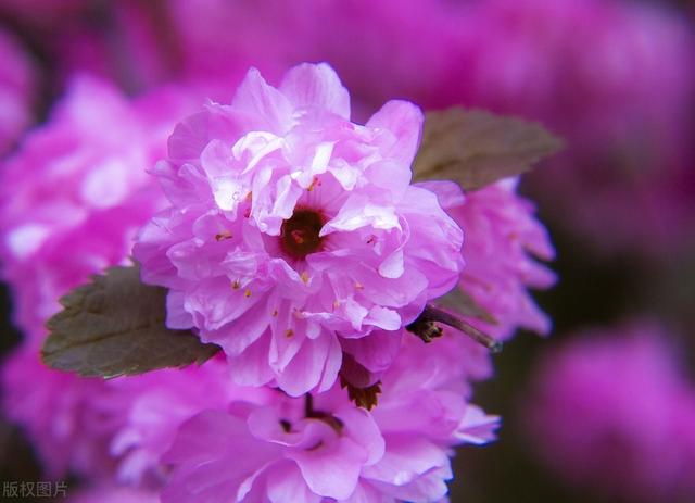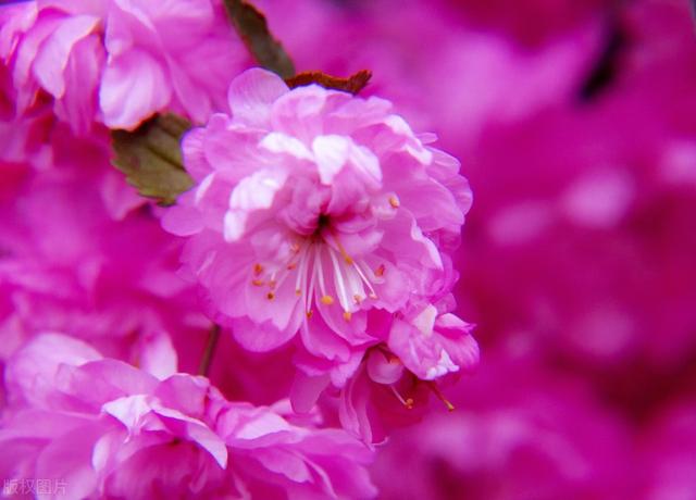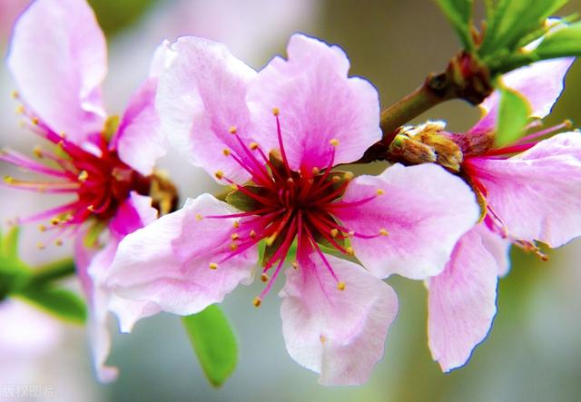 每一朵桃花都像是精心雕琢的艺术品,花瓣边缘那细腻的褶皱,犹如工匠用巧手勾勒出的优美线条。花蕊金黄金黄的,簇拥在一起,像是一颗璀璨的明珠镶嵌在这娇艳的花瓣之中。