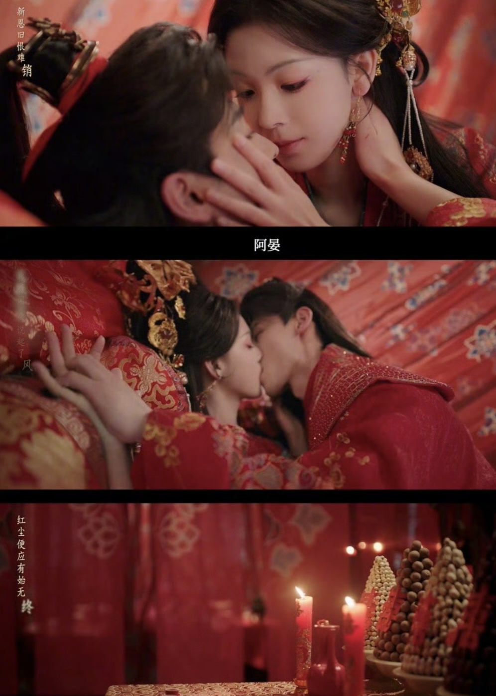 3. 重头戏——握手吻。两人相对而坐,指尖先偷偷勾住,镜头拉近,月色+烛光+红嫁衣,暧昧值瞬间拉满。下一秒,李晏俯身亲上去,扶微睫毛狂颤,镜头扫过,观众集体“啊啊啊”到邻居报警。