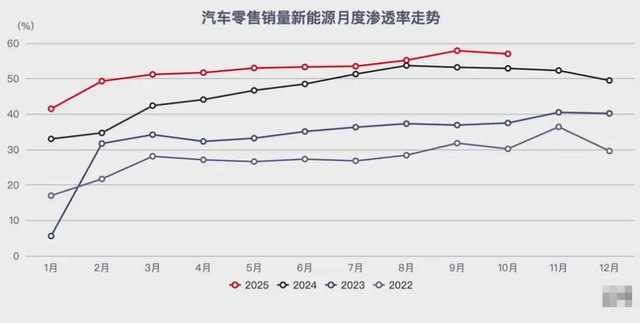 按照机构的数据,整个2025年,国内新能源汽车的渗透率,都超过了50%。