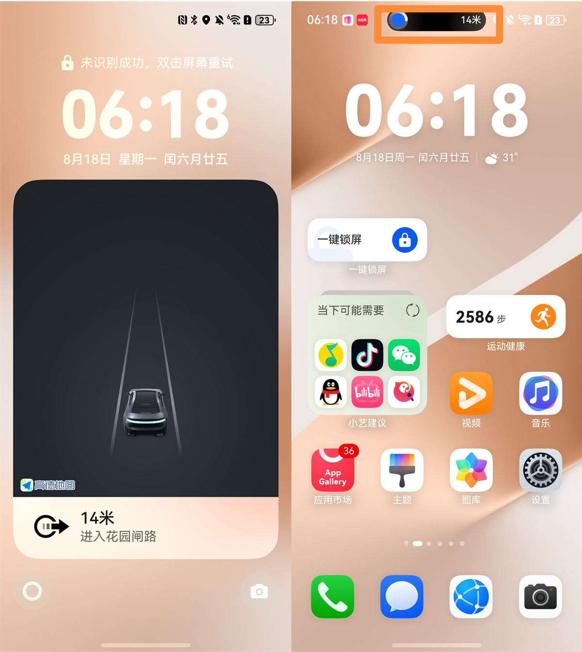 自驾出去玩,体验更爽。上车时将手机导航靠近鸿蒙车机,导航自动流转到车机大屏,大屏看得更清楚,下车时,导航又无缝切回手机步行指引,全程丝滑。此外,比鸿蒙4.2版本更方便的是,用鸿蒙5上的高德地图开启导航后,无论中途切换应用还是在锁屏界面,行程进度和关键提示都会在手机桌面实时显示,动态随时掌握。