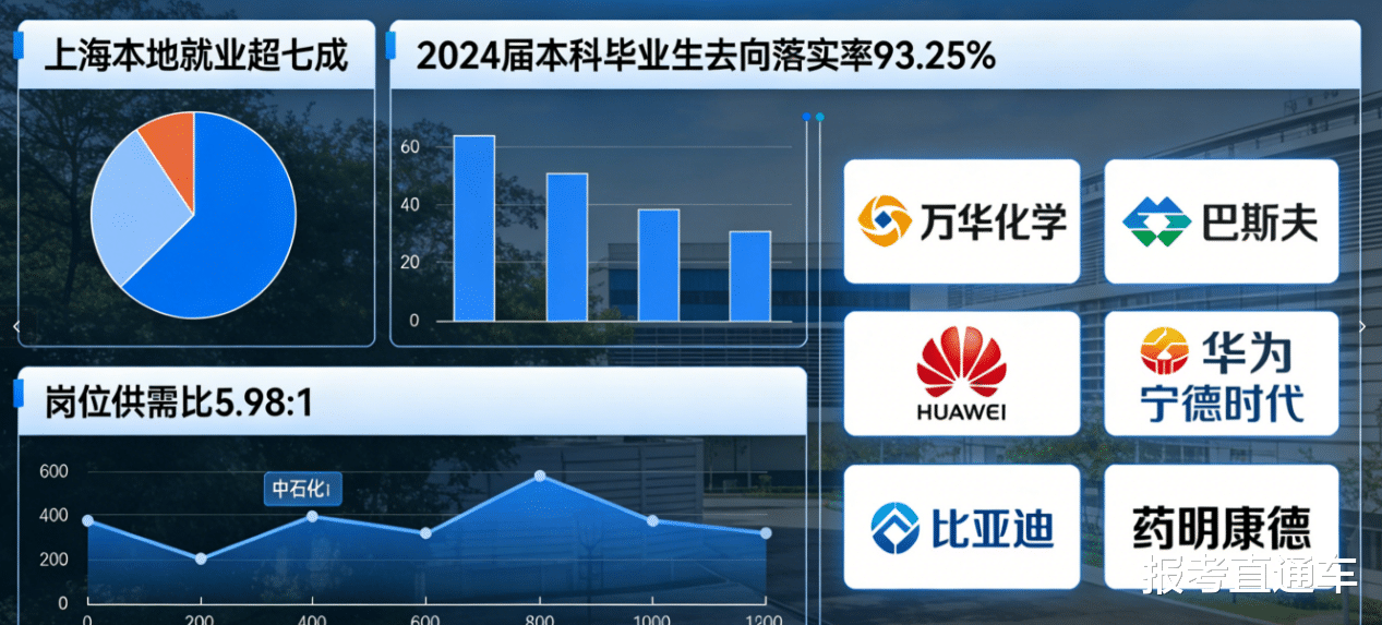 在就业问题上,上海本地对华理的认可度极高,2024届本科毕业生中,毕业生在上海市就业的比例超七成。而放眼全国,华理的行业认可度更是有目共睹。2024届本科毕业生去向落实率达93.25%,岗位供需比达5.98:1,优质岗位供给十分充足。