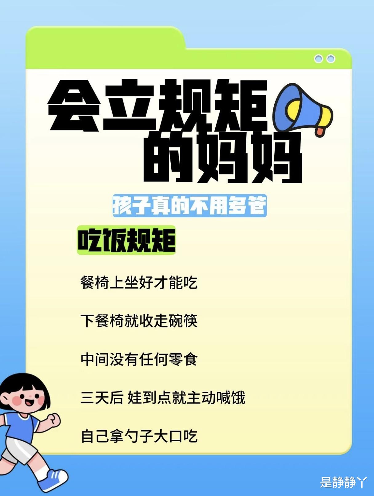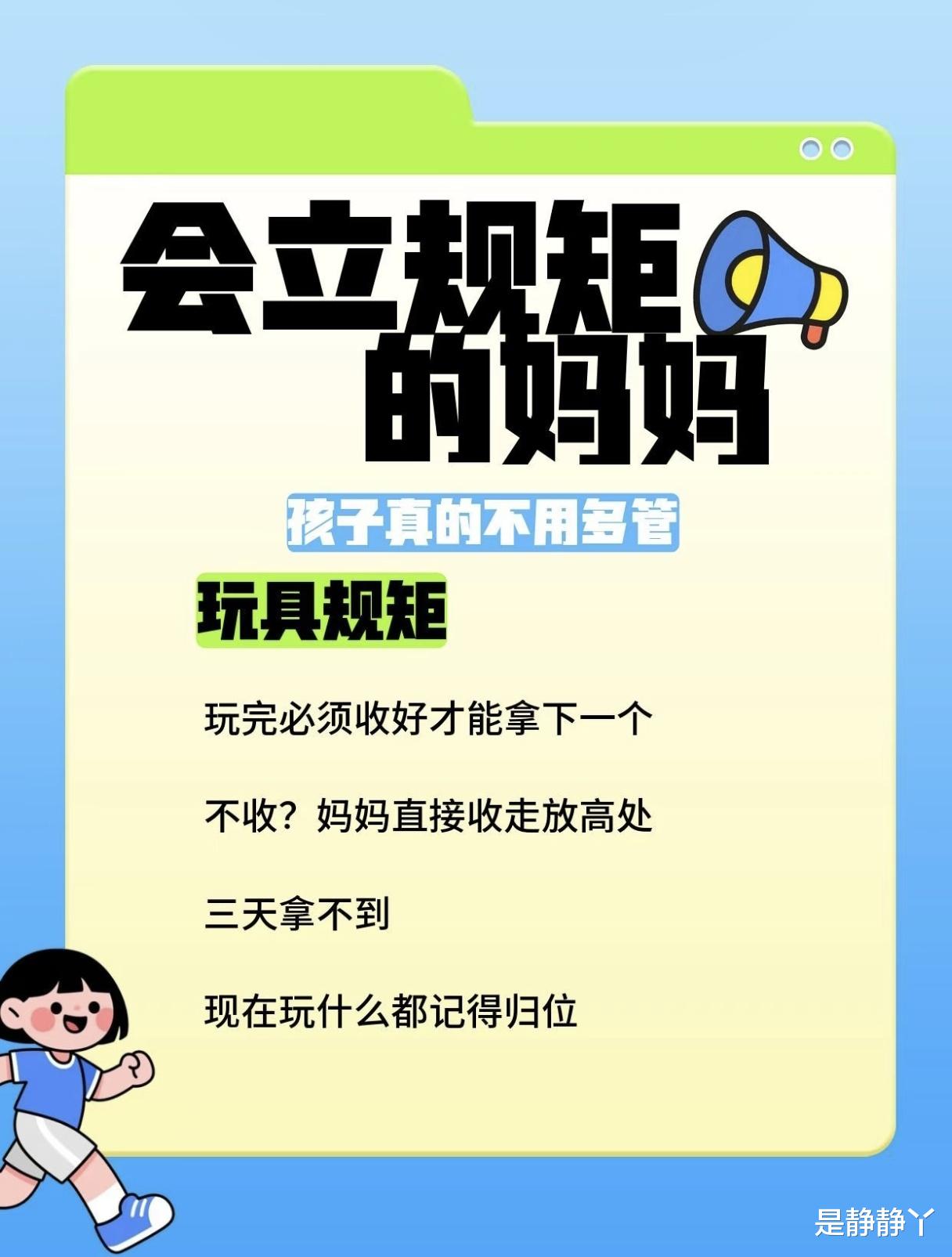 很多妈妈都抱怨带娃累,每天像个不停旋转的陀螺,追着孩子喂饭、收拾满地的玩具、跟孩子讨价还价电子产品的时间,嗓子喊哑了,孩子却依然我行我素。其实,育儿中最省力的秘诀不是“盯”,而是“立规矩”。一个会立规矩的妈妈,往往能让孩子在清晰的边界中学会自律,最终实现“不用多管”的理想状态。