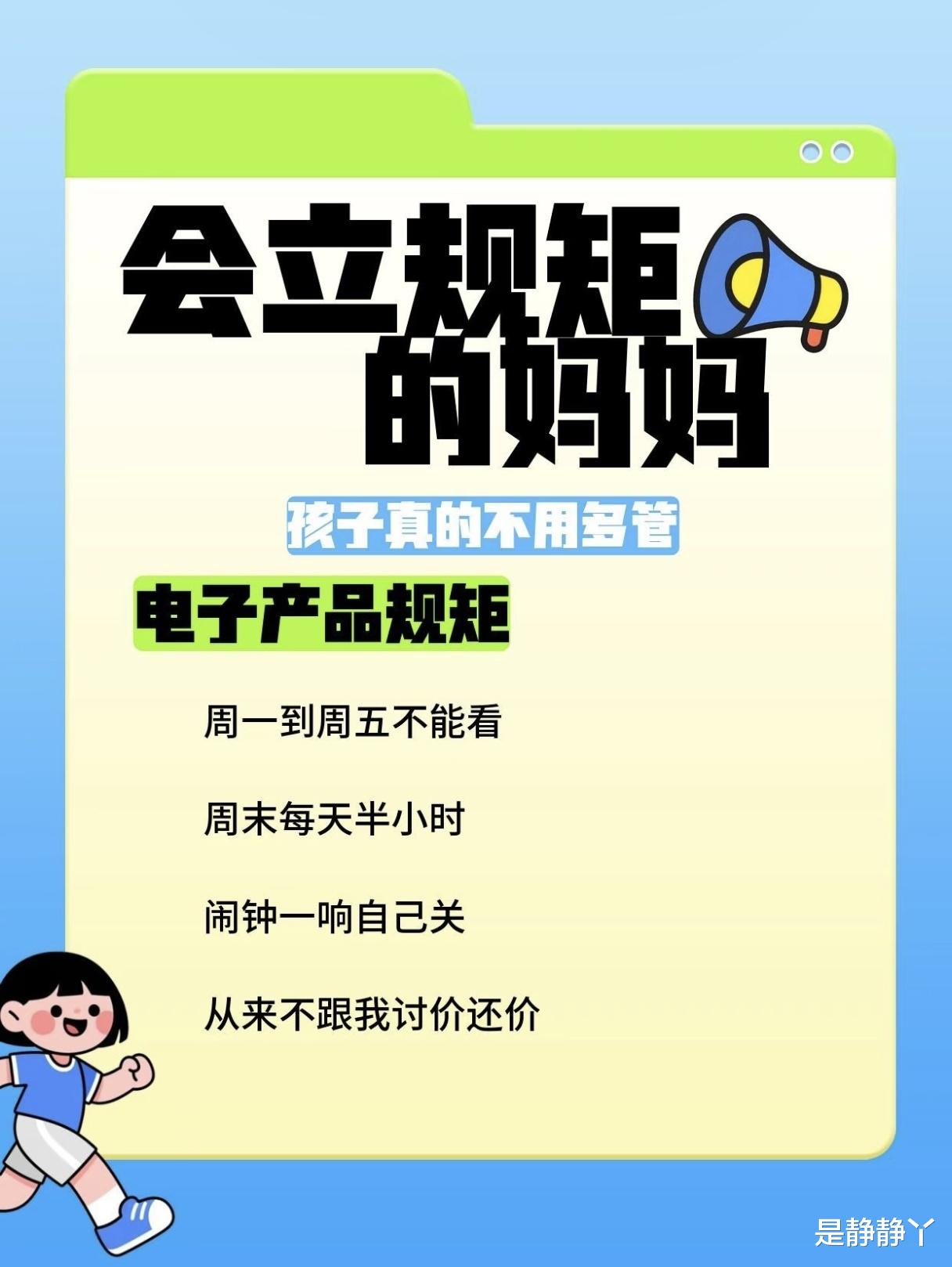 最后说说电子产品这件难事。现在的孩子从小接触手机、平板,很多妈妈都头疼“怎么管”。其实,只要立好“电子产品的规矩”,就能轻松解决这个问题。比如,明确告诉孩子:周一到周五不能看电子产品,周末每天只有半小时,闹钟一响必须自己关掉。一开始孩子可能会因为时间到了而哭闹,可能会想尽办法多看一会儿,但只要妈妈守住底线,不因为他的哭闹而妥协,他就会慢慢明白“时间到了就必须停止”是不可动摇的规则。慢慢地,他不仅不会跟妈妈讨价还价,还会主动在闹钟响时关掉设备,因为对他来说,“遵守时间”已经成了他的本能反应。这种“电子产品的规矩”带来的,不仅是孩子视力的保护,更是他对“自律”的深刻理解——有些事,必须在特定的范围内做,不能因为自己的喜好而随意打破。