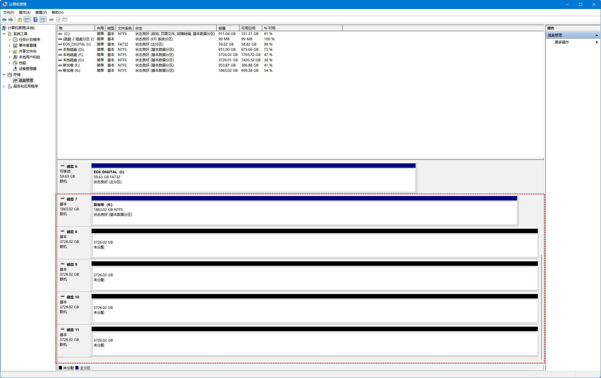 开机后,几块已安装的硬盘均能被系统快速识别,识别过程流畅稳定。铁威马 D9-320 支持多种高速传输协议,包括 USB 3.0、3.1、3.2,以及 Thunderbolt 3 和 4,真正实现免驱即插即用。兼容性方面覆盖主流操作系统,支持 Windows 7/8/10/11、Windows Server 2015/2019、macOS、Linux,以及国产系统如麒麟 V10 SP1、统信 UOS,还能适配 Unraid、TrueNAS、Proxmox VE 8.3 等专业环境,部署灵活,兼容性强。