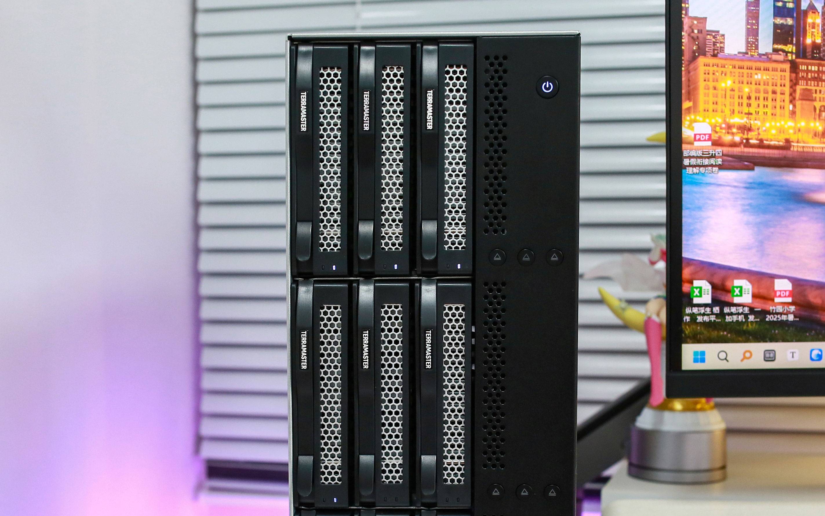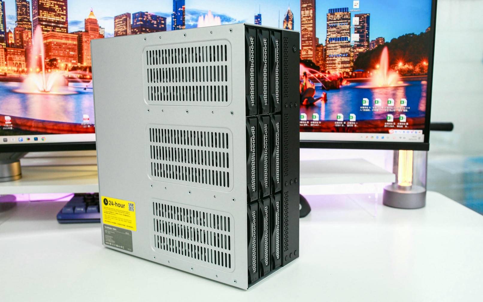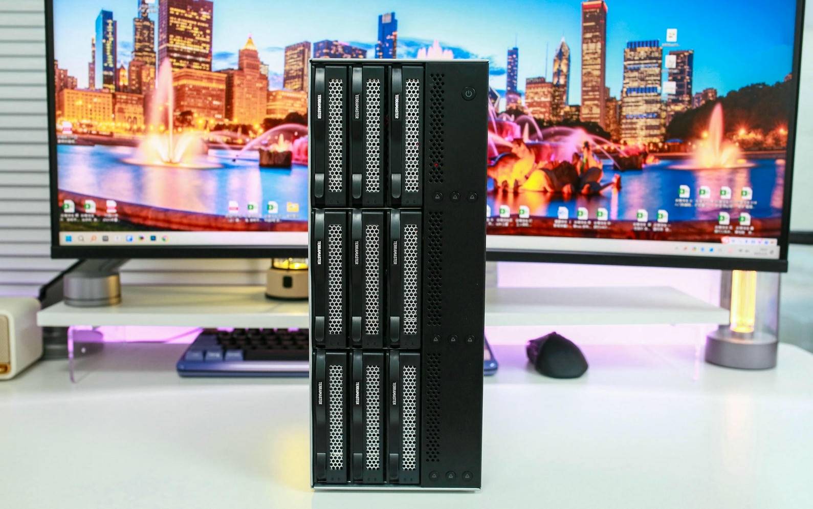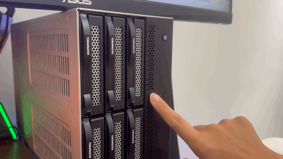 打开电源开关后,铁威马 D9-320 很快开始启动,伴随着 LED 灯亮起,可以清楚看到已安装的 5 块硬盘全部正常工作,运行稳定无异常,整个启动过程安静高效,状态反馈也非常直观。