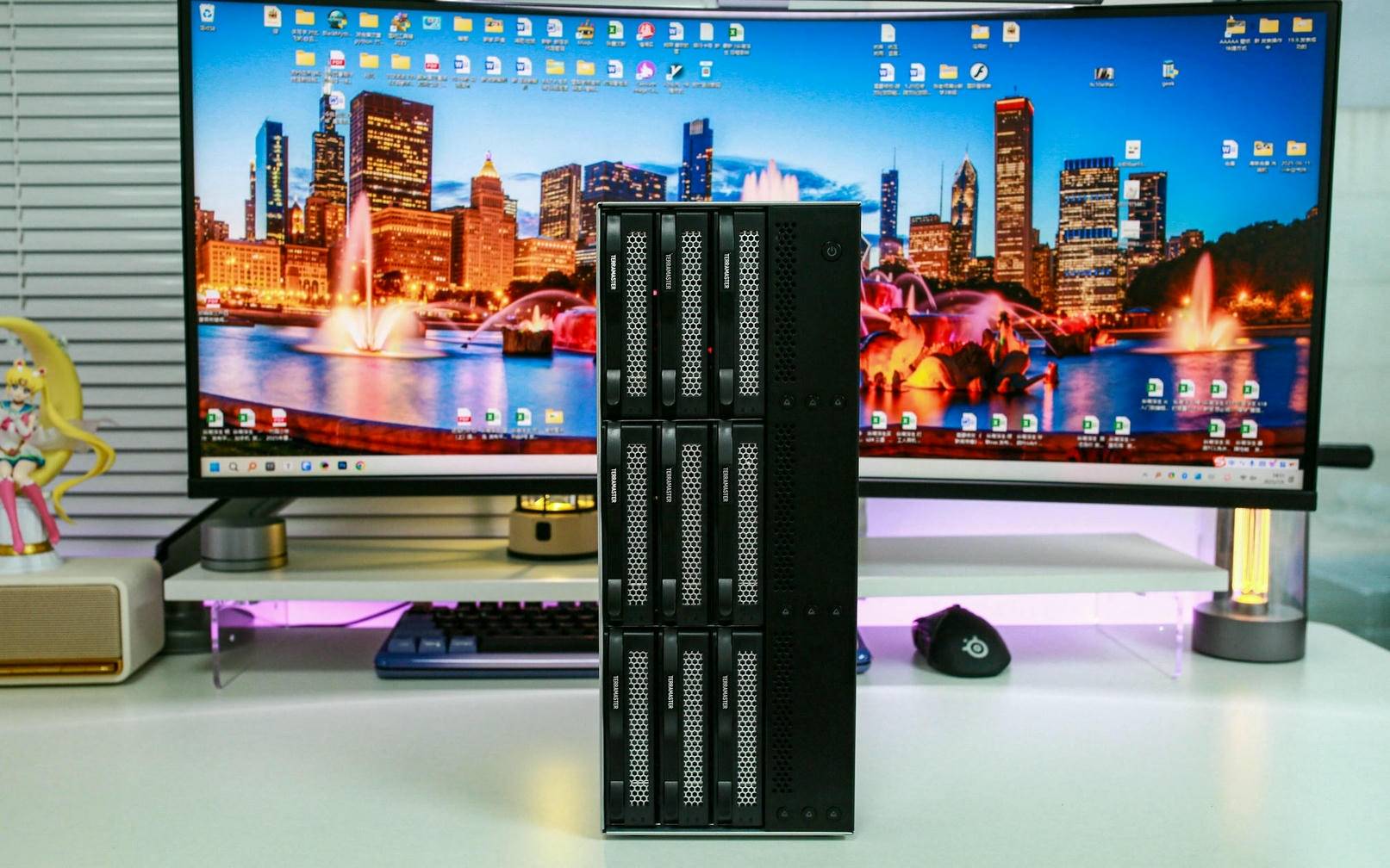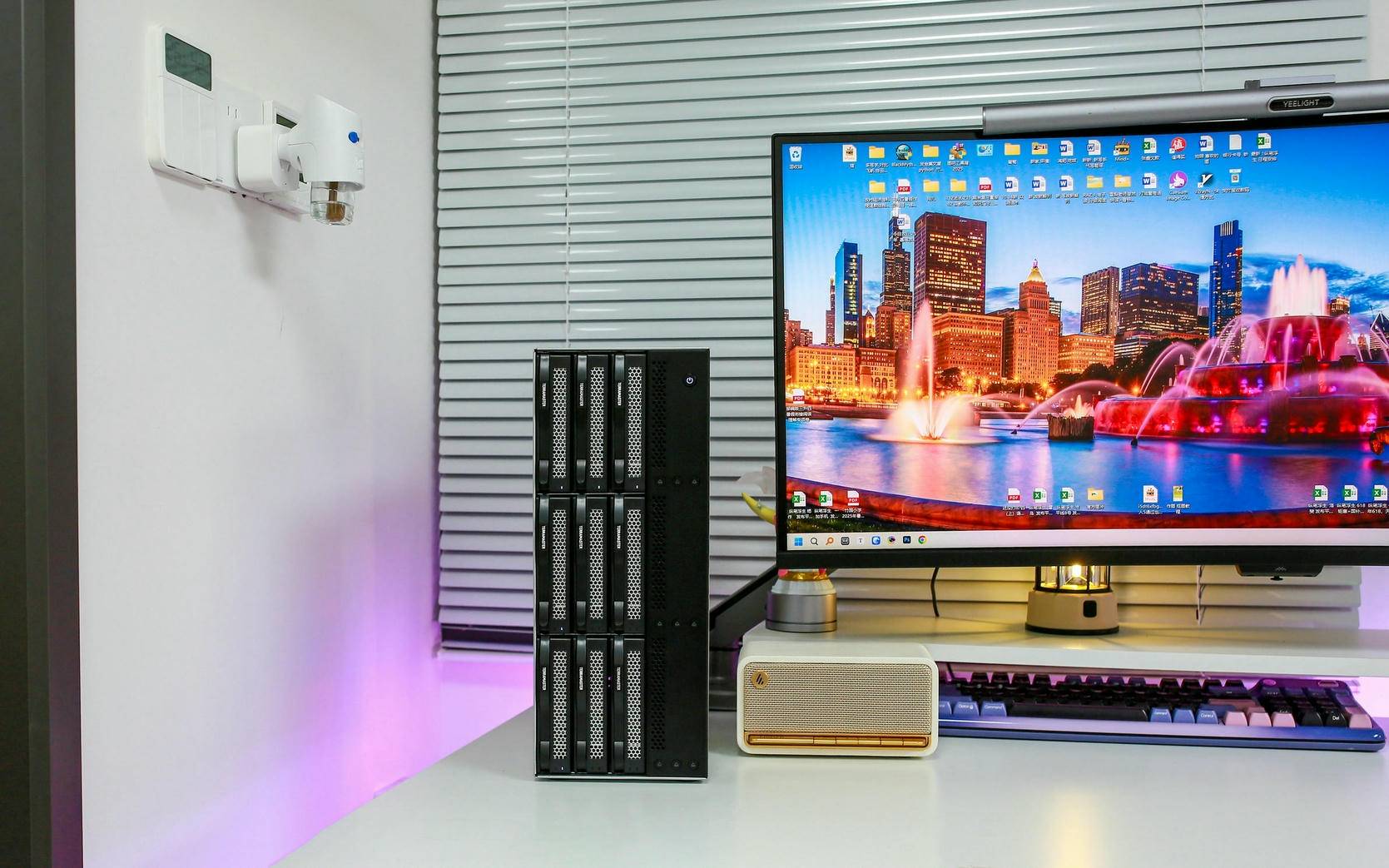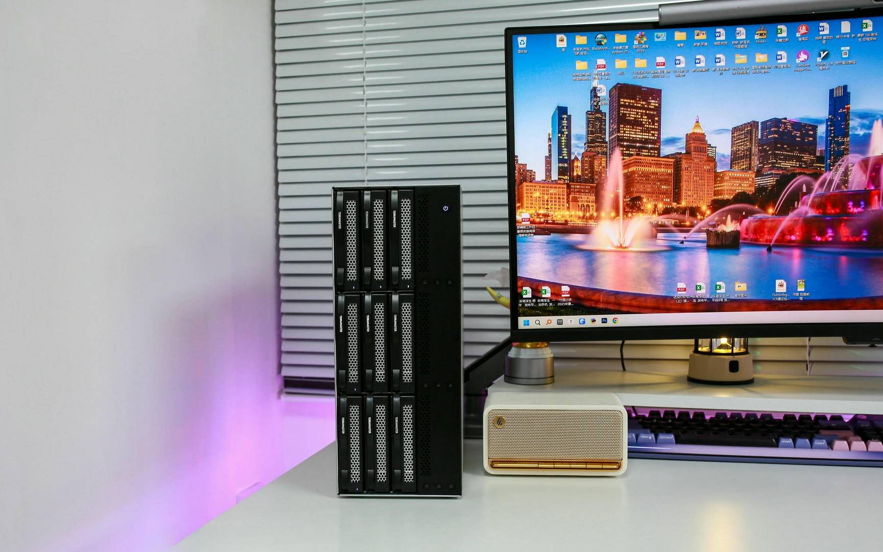 打开电源开关后,铁威马 D9-320 很快开始启动,伴随着 LED 灯亮起,可以清楚看到已安装的 5 块硬盘全部正常工作,运行稳定无异常,整个启动过程安静高效,状态反馈也非常直观。